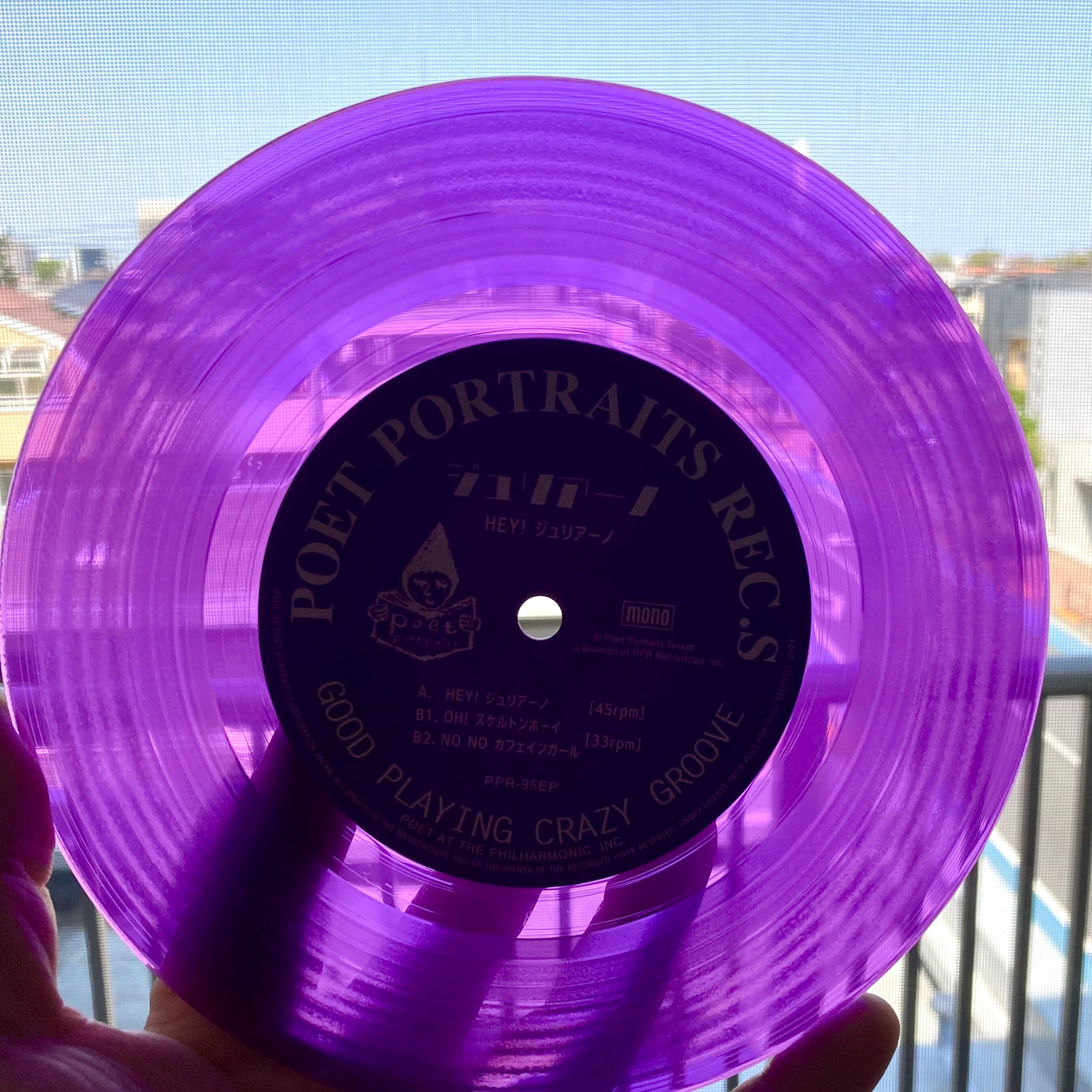 ★ フランスのAn'archivesレーベルより1stアルバム「夢見ル硝子」をリリースしたばかりのジュリアーノ。連続リリース第二弾は幻のアニメ主題歌というテーマで制作、ゲストに遊佐春菜(壊れかけのテープレコーダーズ)を迎えたガレージライクなギンガムポップチューン「HEY!ジュリアーノ」他、全てアルバム未収録曲で構成されたA面45回転・B面33回転のモノラルEPアナログレコード作品。